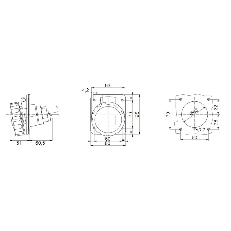 - Capacità serraggio morsetti: 2,5-6 mm² cavi flessibili - 2,5-10 mm² cavi rigidi