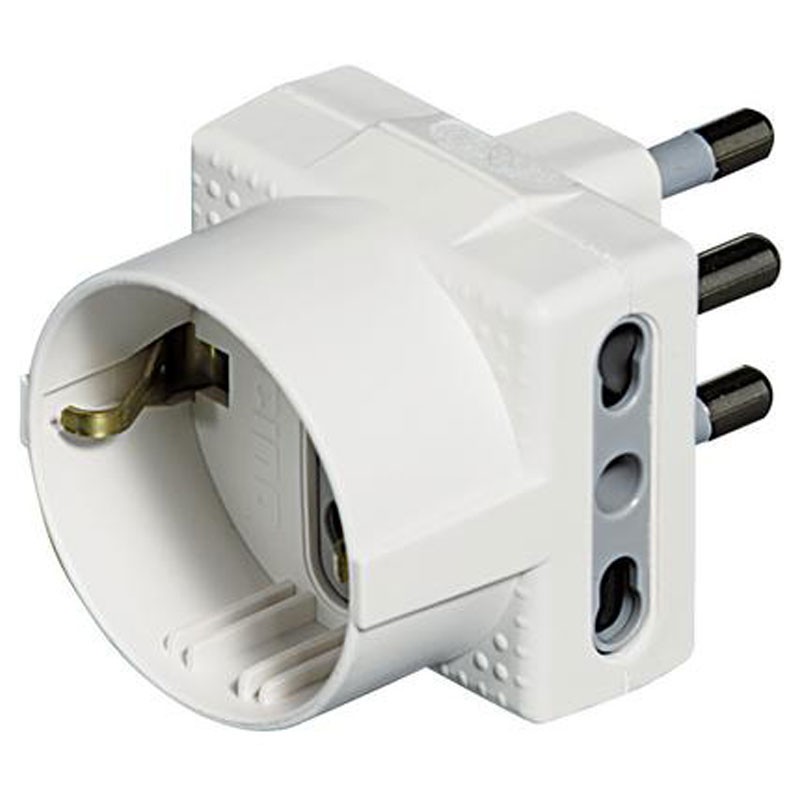 Adattatore triplo Bticino tris presa Tedesca 2 prese bipasso spina 16A bianco S3611DE