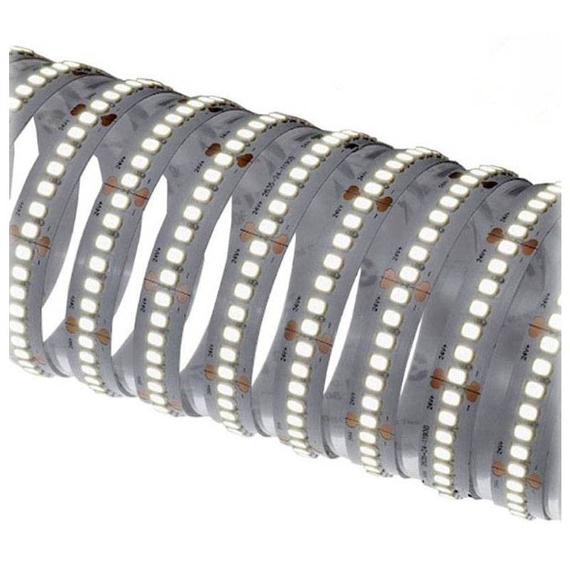 Con un'efficienza di 114 lm/W e una potenza di 11W per metro, questa striscia LED offre un'emissione luminosa fino a 1250 lumen per metro, con un consumo contenuto. La versione da 5 metri contiene 480 LED totali, distribuiti in modo omogeneo per un'illuminazione continua, senza punti scuri.