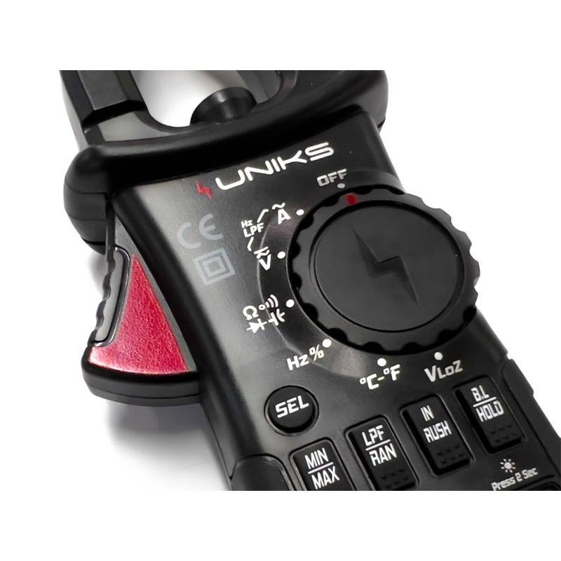 Pinza amperometrica Uniks è pensata per l'utilizzo sia in ambito industriale che civile. Effettua misure in TRMS di Tensione fino a 600V AC/DC e Corrente da 10mA fino a 600A AC.