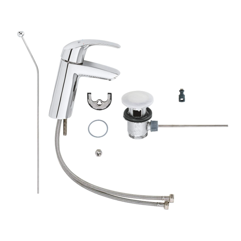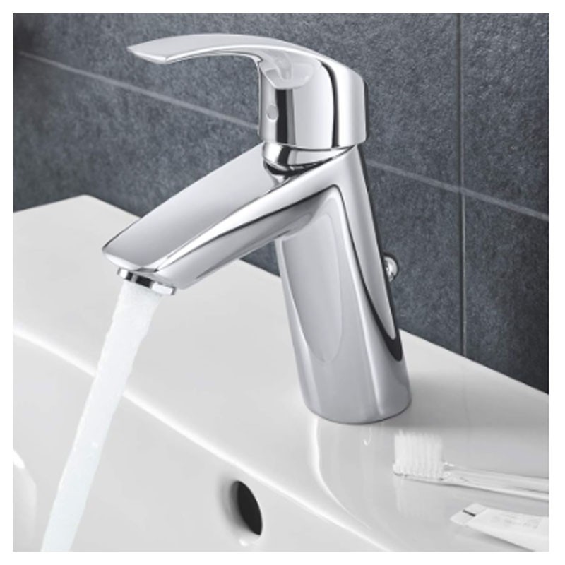 Miscelatore Rubinetto per Lavabo Grohe EUROSMART monocomando, taglia M, colore Cromato, a risparmio idrico con scarico a saltarello.