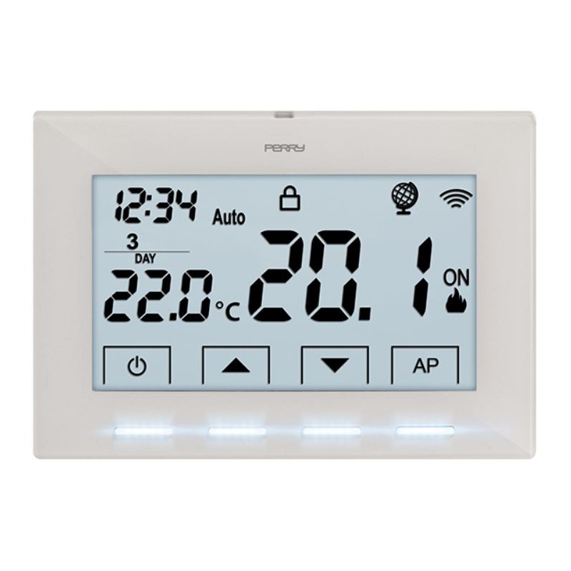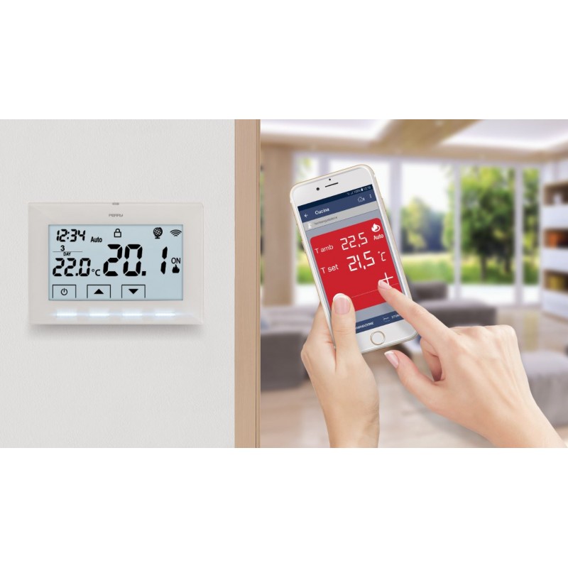 Cronotermostato a parete Perry WIFI colore bianco, Programmabile da smartphone o tablet garantisce la massima flessibilità di utilizzo.