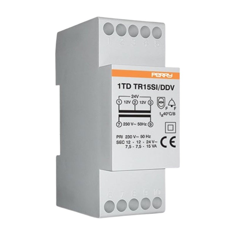 Trasformatore Perry 15VA uscite 12-12-24V 2 DIN IP40 1TDTR15SI/DDV