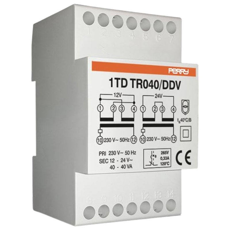 Trasformatore Perry 40VA uscite 12-12-24V 3 DIN IP40 1TDTR040/DDV