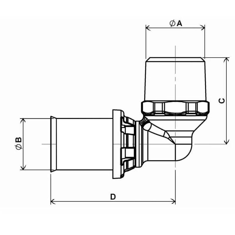 Raccordo a gomito a pressare Ape per tubo multistrato con le seguenti caratteristiche: