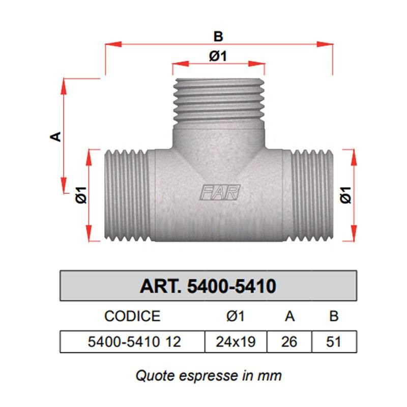 Raccordo a T Far 24X19 monoconi cromato in ottone 5410 12