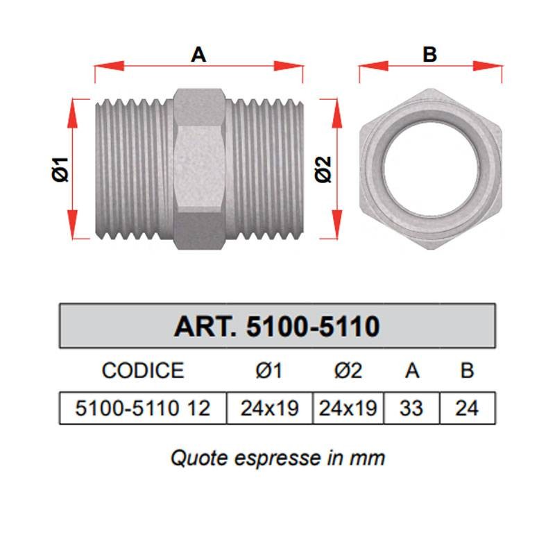 Raccordo niplex diritto Far 24x19 monocono cromato 5110 12