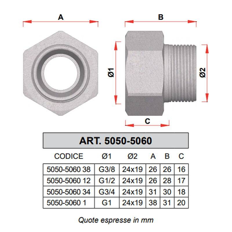 - Attacco intercambiabile per tubo rame, plastica e multistrato