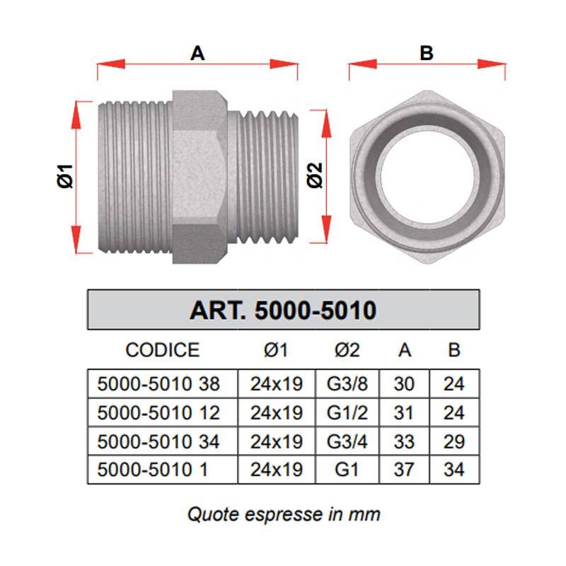 - Attacco intercambiabile per tubo rame, plastica e multistrato