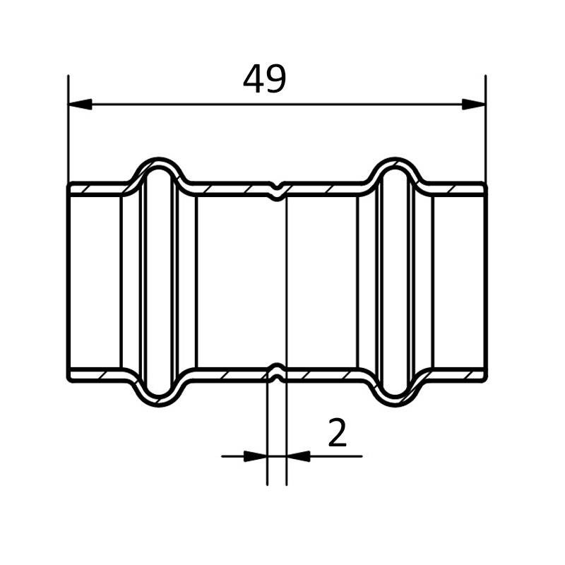Manicotto diritto IBP Banninger MaxiPro, sistema a pressare per refrigerazione e condizionamento, con le seguenti caratteristiche: