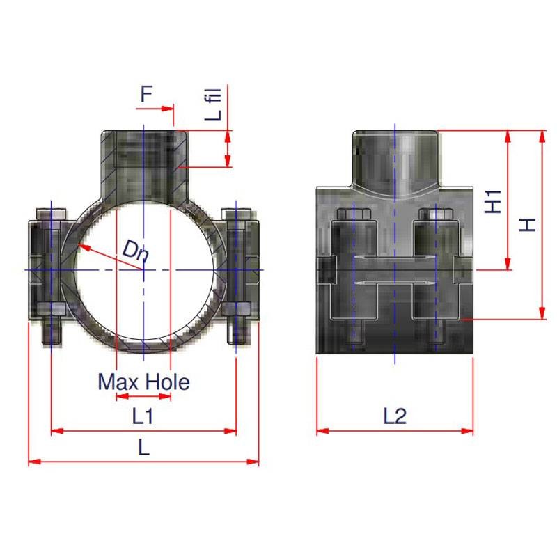 Presa a staffa semplice Nupi diametro 63 mm 1 1/2 in PE 10KPS63112