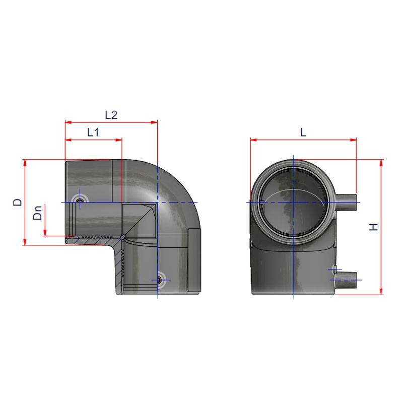 Raccordo a gomito 90 gradi elettrosaldabili Nupi monofilare ELOFIT in Polietilene per collegamento tubi con le seguenti caratteristiche: