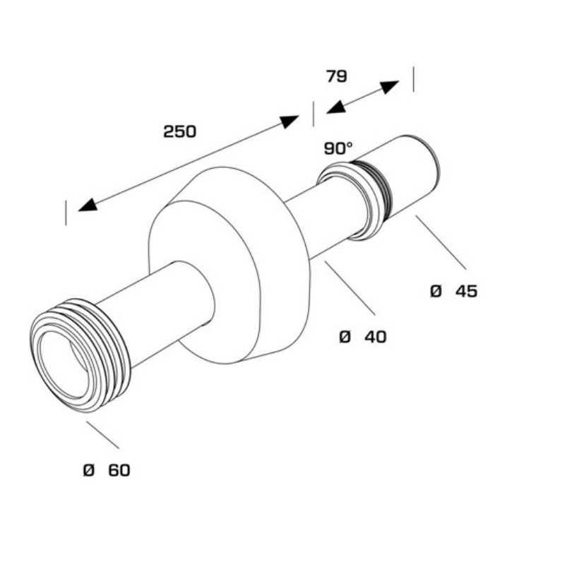Cannotto Bonomi per cassette ad incasso WC D 40-45 mm L 250 mm 8820PP40B0