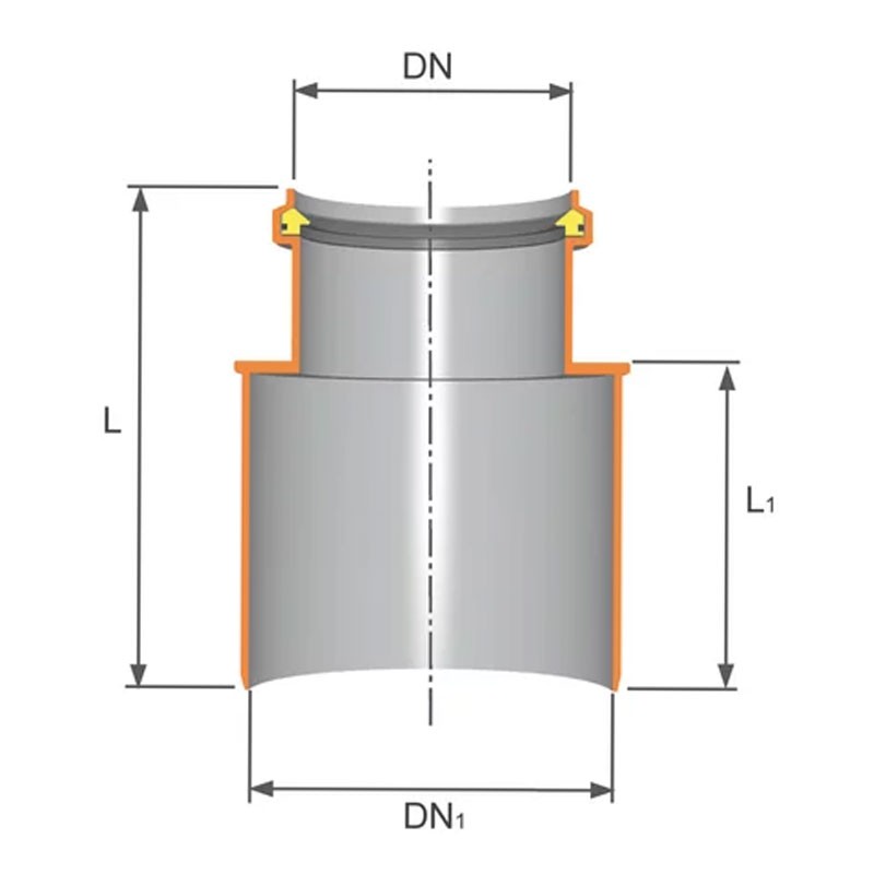 Raccordo per il collegamento al PVC Valsir PP3 D 110/100 mm VS0564101