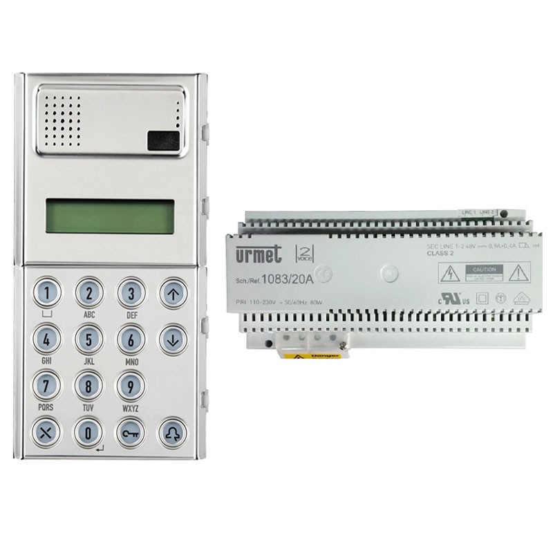 Kit base impianto Urmet, con modulo di chiamata digitale 2Voice su Sinthesi Steel, composto da: