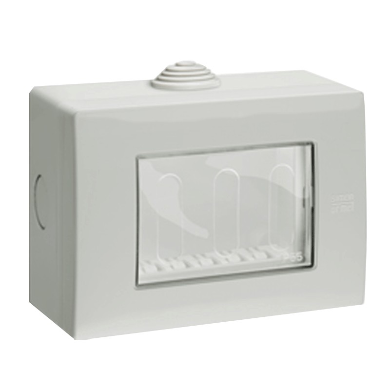 Custodia da parete porta moduli (frutti) Urmet Simon Nea 3 moduli, colore grigio Ral 7035. Grado di protezione IP55. Al suo interno è possibile installare qualsiasi modulo (frutto) della serie Urmet Simon Nea.