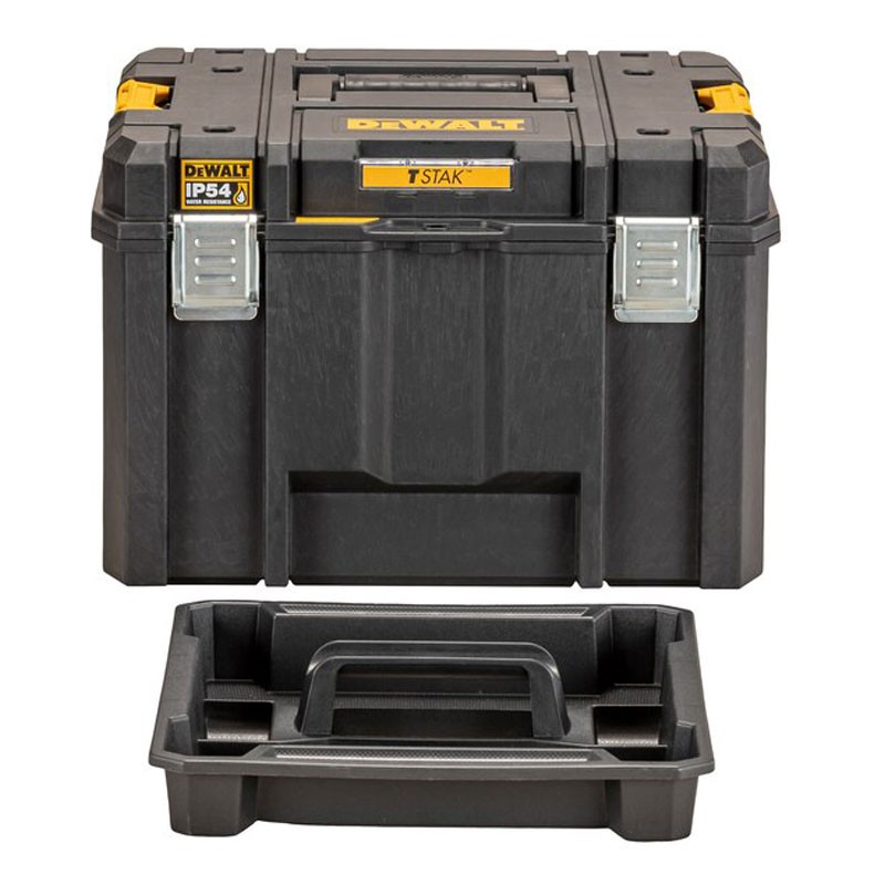 Valigetta porta Utensili DeWALT TSTAK IV con vasca porta oggetti amovibile, cerniere per aggancio laterale. Con cerniere di chiusura in metallo e guarnizione a protezione da umidità e polvere (IP54).