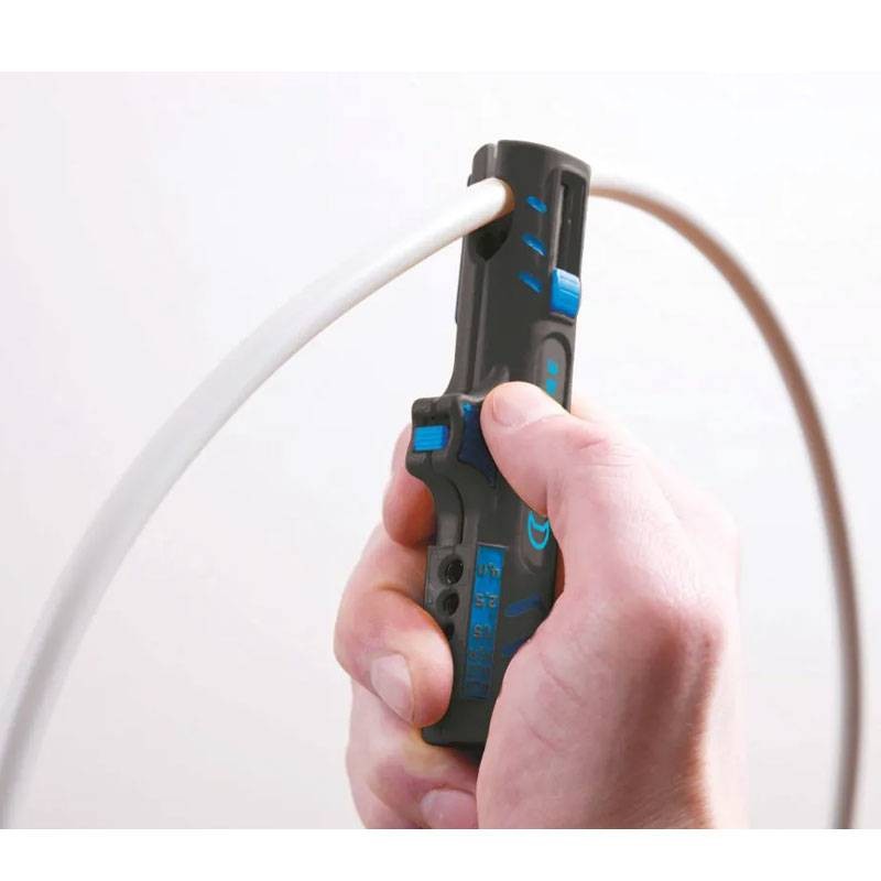 Compatibile con i più comuni cavi standard tondi isolati, questa spelafili garantisce affidabilità e velocità di esecuzione, anche nelle condizioni di lavoro più impegnative. Il suo design compatto ed ergonomico assicura una presa salda e un utilizzo prolungato senza affaticamento.