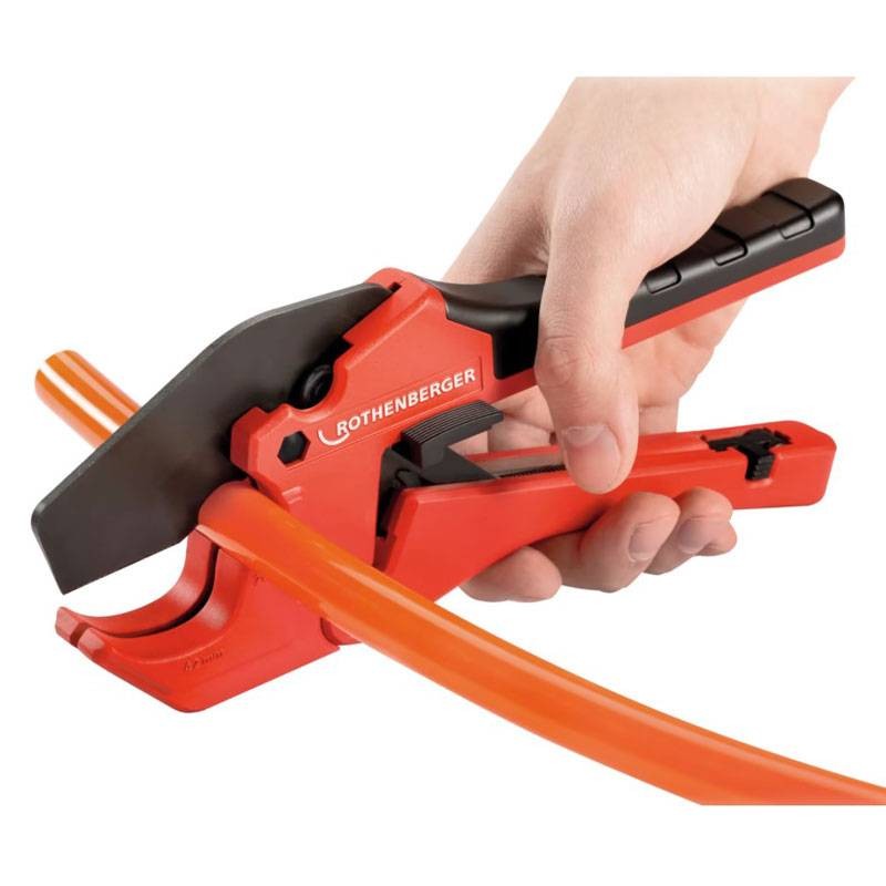Cesoia Rothenberger ROCUT 42 TWIN CUT per tubi plastici, taglio netto e modalità a cricco automatica per massima efficienza, con le seguenti caratteristiche: