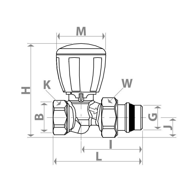 Valvola micrometrica diritta Giacomini per radiatori con attacco tubo ferro con le seguenti caratteristiche: