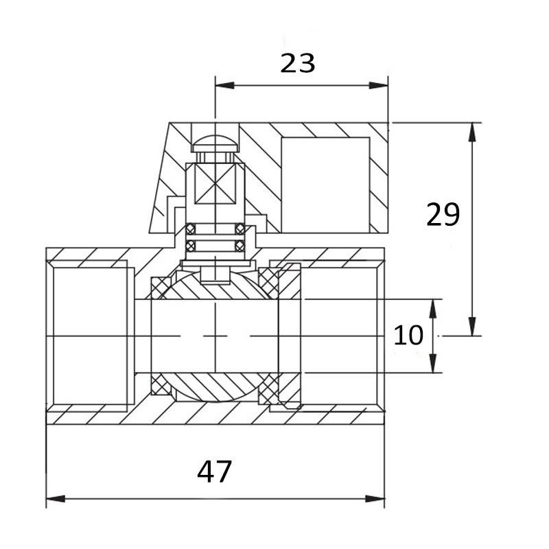 Valvola a Sfera Mini Atusa, soluzione compatta ed efficiente per la regolazione dei flussi d'acqua e aria in impianti idraulici e di distribuzione, con le seguenti caratteristiche: