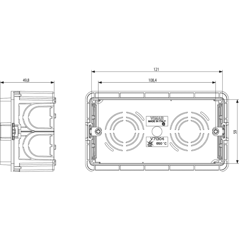 - Scatola da incasso rettangolare unificata 4 moduli (GW 650 °C) per pareti in muratura