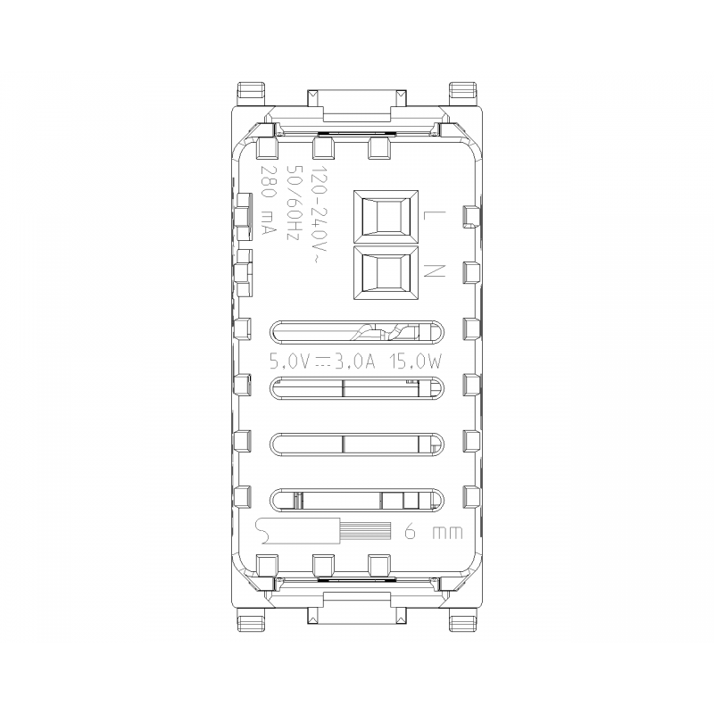 Alimentatore USB 15W 3A 5V per serie Vimar Plana: