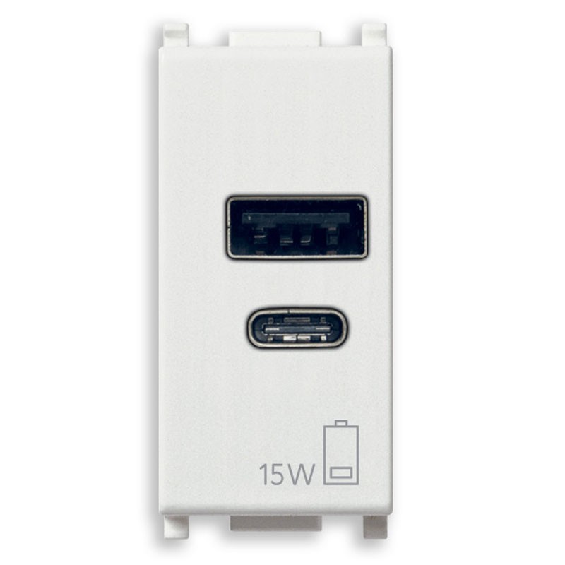 Alimentatore Vimar Plana USB A+C 15W 5V 1 Modulo Bianco 14292.AC.15