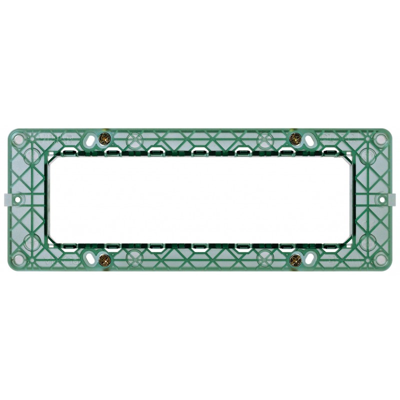 Supporto per qualsiasi scatola 6/7 moduli (frutti) anche non di marca Vimar. Questo supporto permette di agganciare solo le placche Vimar Plana